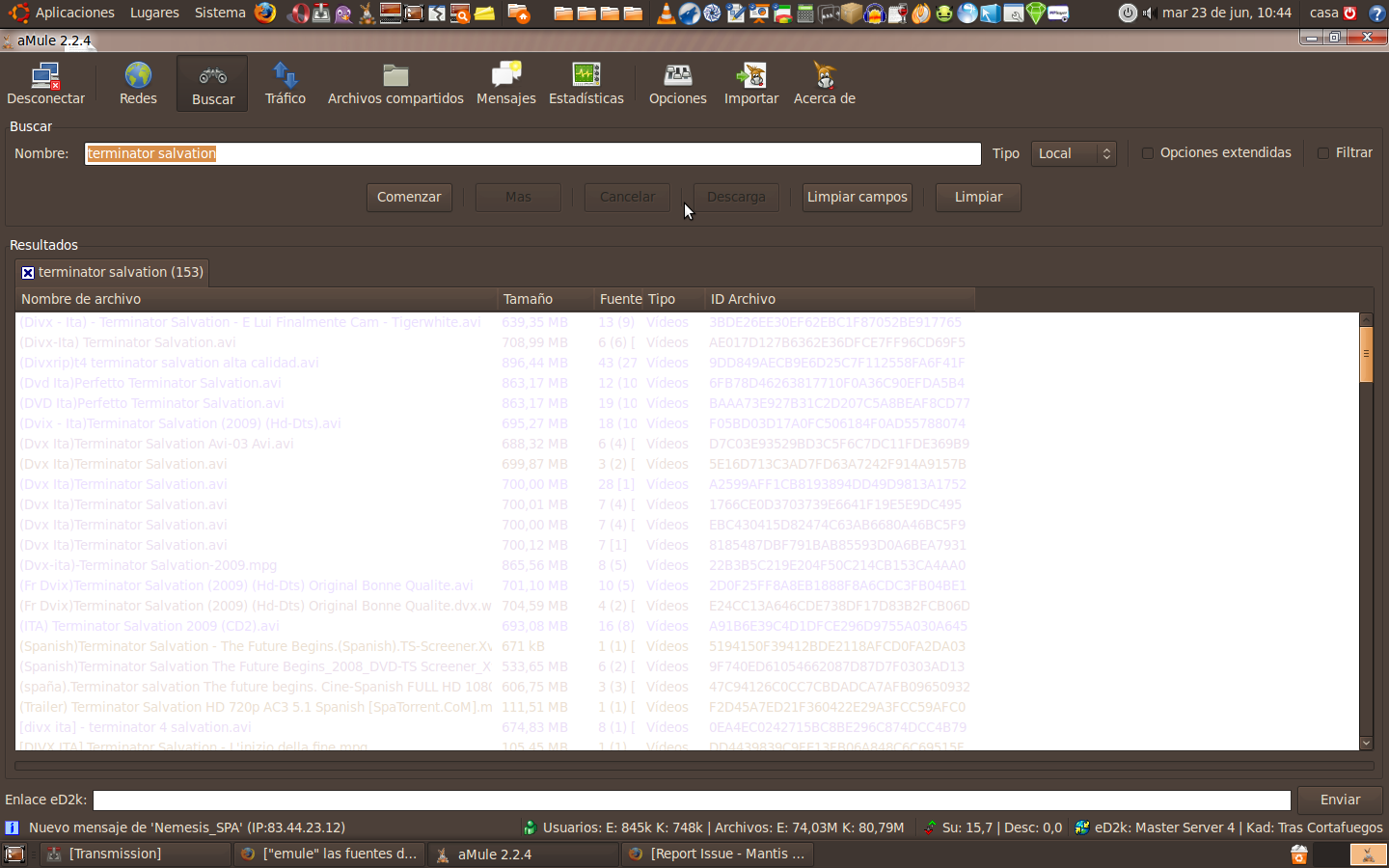 | 0001531 | aMule | GUI | public | 2009-06-23 10:44 | 2010-06-23 14:08 | ||||