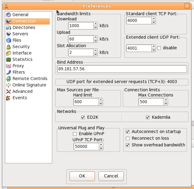 | Additional Information | I've tried to: - Disable iptables (firewall); didn't work. I get the error the same - Change to other random port numbers; get the same error - Check using the command line if the port that amule complains about is really in use; no it's not. - It happens with ANY port I give. In this case the error says it's port 4000, but if I change it to any number, I get the same error (with the other port number). | ||||||||