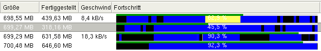 | Description | As you can see on the attached picture the 2nd file from bottom has finished around 46,5% and the green bar is ok but the black color doesn't represent 46% of the whole bar. |
