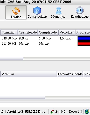 | Description | Using amuled and amulegui in two separate conmputers. In all versions up to 2.1.1, the total download speed displayed in the status bar (at the bottom of the window) in not the sum of the individual download speeds displayed in each file. At the beginning i suposed this is related to bug 741 (the total speed possible is incorrect) but yesterday i upgraded wxGTK to 2.6.3.2 and amule to 2.1.2 in the two computers. The new configuration also have this problem. See the image attached. | ||||||||